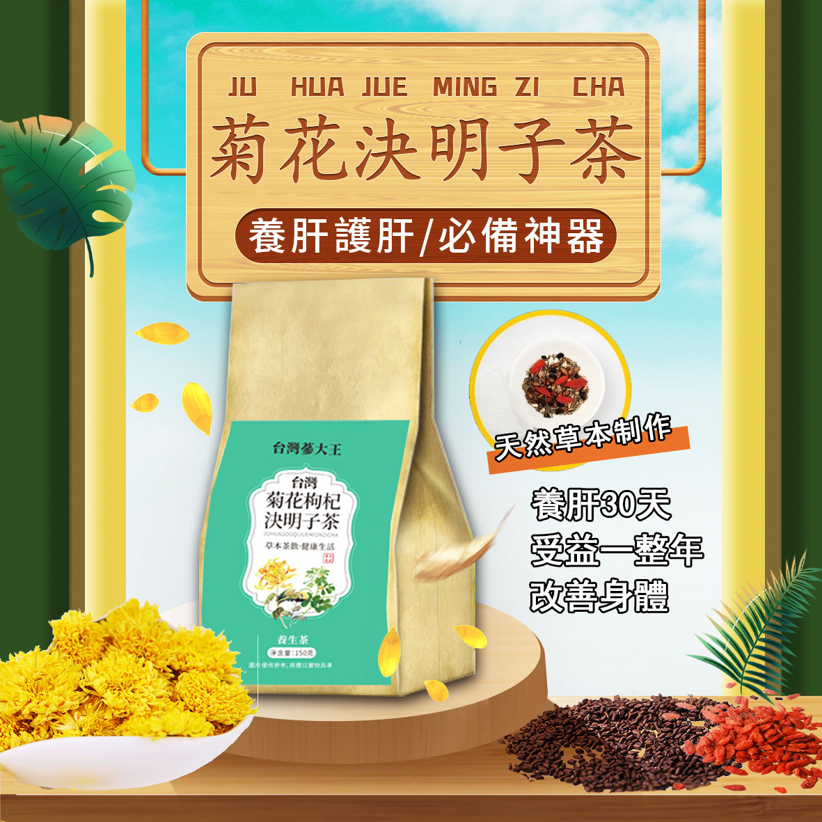 25分鐘前決明子菊花養生茶,每天喝一杯,熬夜疲憊,過度用眼,喝酒抽煙,膚色暗沉,脾氣不好的煩惱,統統不見! - 【超值優惠3入組共90包】NT$799